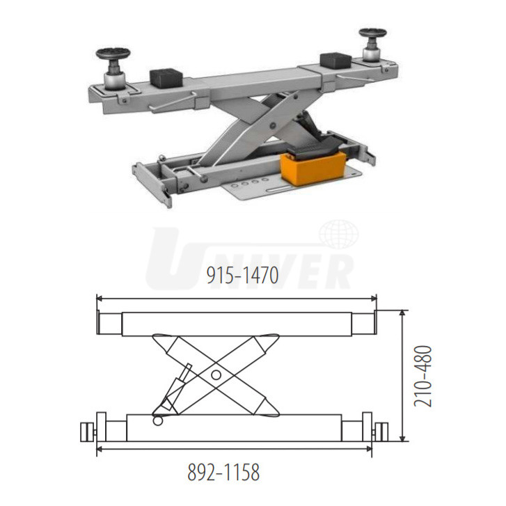 • přídavný pojezdový nůžkový zvedák s pneumatickým ovládáním