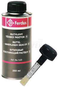 Roztok B je vyroben z butylového kaučuku, který nepropouští vzduch. Roztok slouží k utěsňování husticího vzduchu v bezdušových pneumatikách v případech:1. Při opravě poškozené butylové těsnicí vrstvy na vnitřní straně pláště při aplikaci opravných nýtů ON a opravných vložek US, UR, OR, KR, KD a OD. Roztok se nanáší štětcem ve středně silné vrstvě na obroušenou plochu a na modré okraje opravného materiálu.