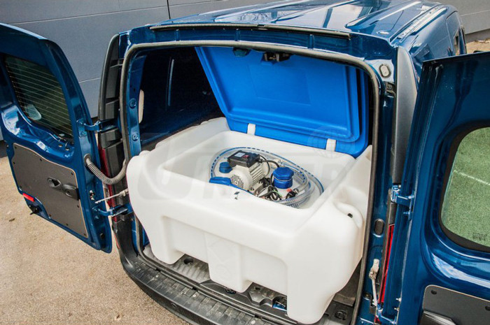 Mobilní nádrže na AdBlue o objemu 250 l a 450 l s elektrickými čerpadly 12 V nebo 24 V, s výdejními pistolemi a průtokoměry na AdBlue.- mobilní jednostěnná nádrž z vysoce odolného LLDPE, 250 l (26 928, 26 929) a 450 l (26 921, 26922), bílá, víko modré