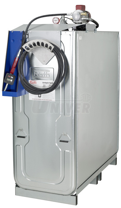 Dvouplášťová stacionární nádrž 1500 l na oleje s elektrickým čerpadlem 230 V, s výdejní hadicí 8 m a s výdejní pistolí s digitálním průtokoměrem.- dvouplášťová stacionární nádrž o objemu 1500 l (45 105)