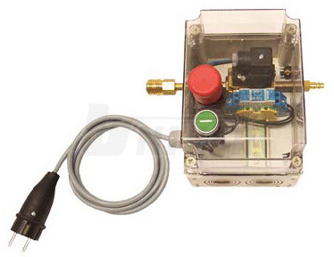 19 413 472 – omezovač doby chodu pro pneumatická zařízení výdeje čerstvého oleje, bezpečnostní odpojení pod stálým tlakem se nacházející pneumatická zařízení výdeje čerstvého oleje s tlačítkem startu a ochrannou regulací, magnetický ventil pro automatické přerušení přívodu stlačeného vzduchu, smontovaný pro použití, rozměry 200 x 180 x 220 mm