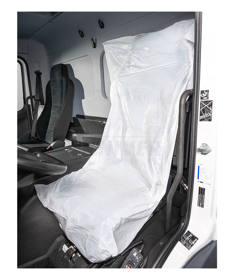 Větší a silnější polyetylenové povlaky na přední sedadla navinuté na roli s perforací pro snadné odtržení jednotlivých povlaků.- bílé bez potisku