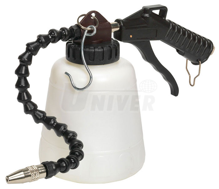 Praktická pneumatická pistole s pružnou segmentovou hubicí a nastavitelnou tryskou se používá pro čištění a odmašťování a to i v obtížně přístupných místech.- vynikající a velmi široké uplatnění nalézá při aplikaci čisticích a odmašťovacích přípravků