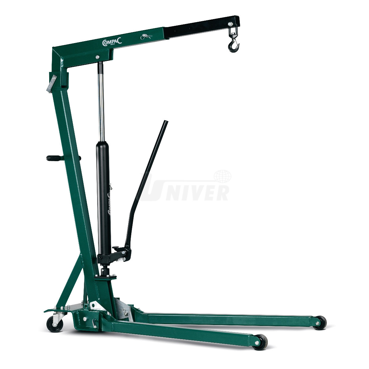 - podvozkové nohy i nosné rameno lze sklopit (složit dohromady), takže jeřábový vozík ve složeném stavu zabírá jen minimální prostor (360 x 420 mm)