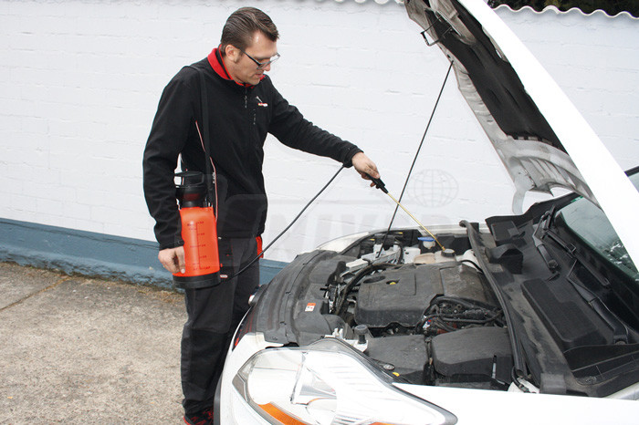 Rozprašovač s tlakovou pumpičkou a zásobníkem 5 l, hlava z nerezové oceli s možností nastavení a uzavření, hadice 1,25 m.- vhodný pro různé chemikálie, mycí a čisticí prostředky, ředidla apod.