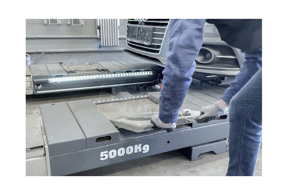 Pryžové desky pro vyrovnání vybrání v plošinách čtyřsloupových a nůžkových zvedáků po vyjmutí předních otočných plošin pro měření geometrie kol.- vyrovnávací desky dokonale vyplní vybrání v plošinách zvedáků po vyjmutí předních otočných plošin v případě, že tyto plošiny již nejsou pro normální mechanické práce na zvedáku zapotřebí a je zbytečné je zatěžovat a opotřebovávat