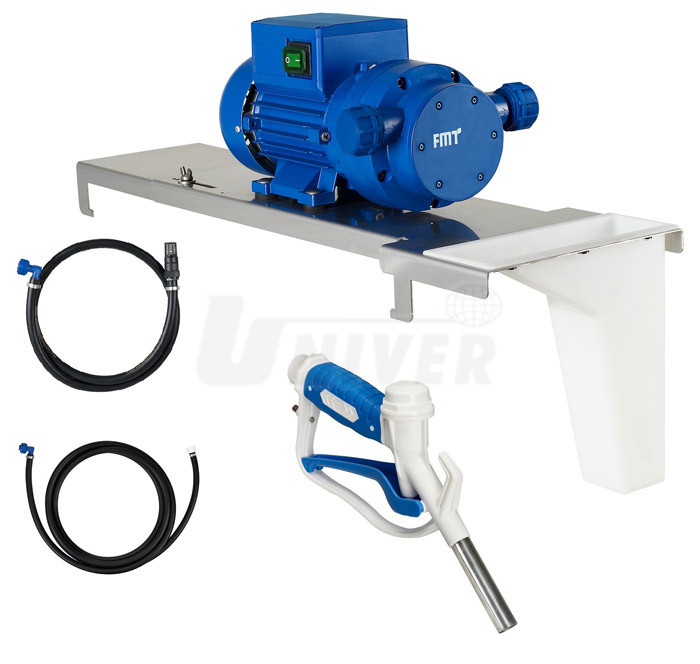 Sestava na sud s elektrickým samonasávacím membránovým čerpadlem 230 V pro AdBlue a vodu, s deskou pro instalací na sud, s držákem výdejní pistole, se sací hadicí a s výdejní pistolí.- sestava pro instalaci na sud s elektrickým samonasávacím membránovým čerpadlem s mechanickou výdejní pistolí