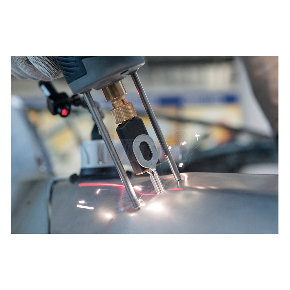 Spotovací přístroj pro naváření nejrůznějších vytahovacích elementů z oceli a hliníkových slitin na vnější panely hliníkových i ocelových karoserií při rovnání jejich promáčklin.- spotovací přístroj (hliník + ocel) s inovativní svařovací pistolí a její jedinečnou lineární motorovou technikou pro precizní ovládání svařovacího procesu