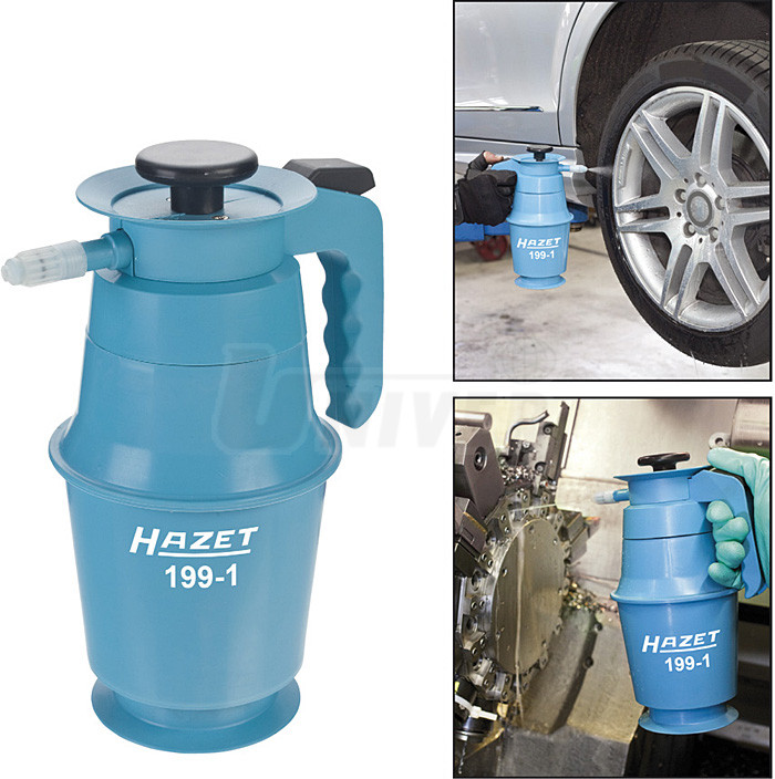 Tlakový postřikovač se zásobníkem o celkovém objemu 1,5 l z odolného polypropylénu.Používá se jako univerzální přístroj v autoopravárenství, v řemeslné i průmyslové výrobě, v zemědělství, na zahradě, ve stavebnictví atd. pro nástřik/postřik různých kapalin. Bez problémů může jít i o různé chemikálie (včetně žíravin), čisticí prostředky, ale také oleje, maziva apod.