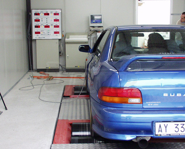 Německá firma AHS PRÜFTECHNIK vyrábí již mnoho let naprosto špičkové válcové zkušebny výkonu, ale mimochodem také válcové zkušebny brzd, plošinové zkušebny brzd, zkušebny podvozků atd. Jde o High-Tech-zařízení (vyrobeno v Německu). Pokud se jedná o válcové zkušebny výkonu AHS, pracují na principu vzduchem chlazené vířivé elektrické brzdy. Oproti principu setrvačných hmot je možné s vířivou brzdou simulovat elektricky řízené a definované reakční síly a rovněž i různé jízdní odpory. Simulace zatěžování zahrnuje režimy jako konstantní tažná síla, konstatní rychlost či otáčky, různé jízdní simulace (jízdní odpory, jízdní cykly apod.).