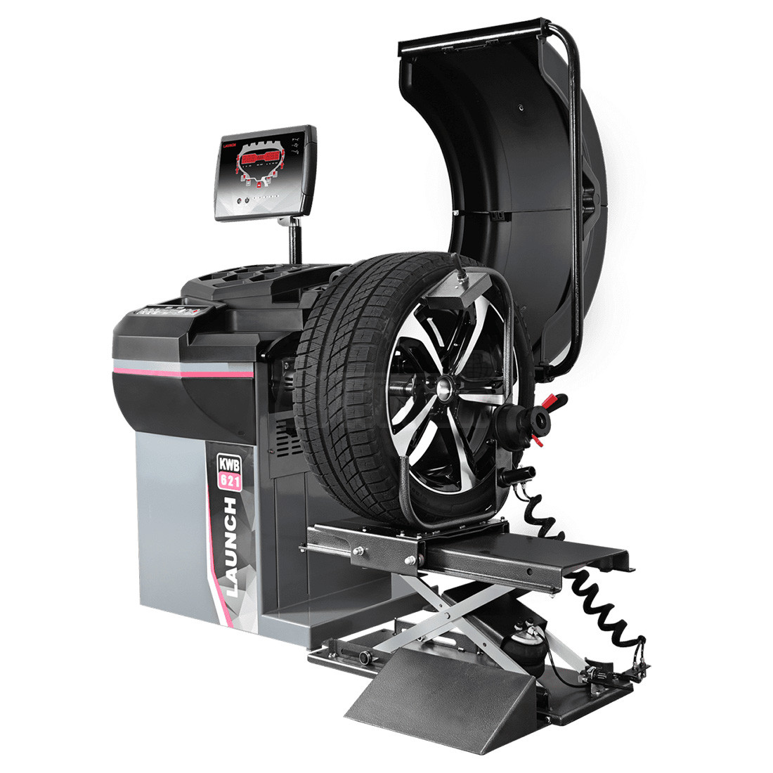 Vyvažovačka kol osobních a lehkých užitkových vozidel a kol motocyklů (12" – 24") s LCD monitorem, sonarem, laserovým ukazovátkem a vnitřním osvětlením kola.- velmi tichý chod