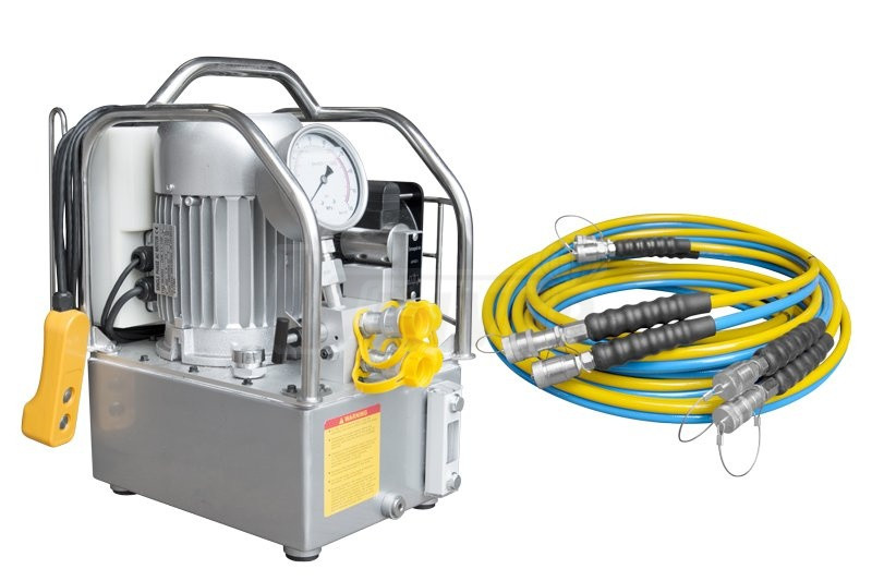 Elektrická hydraulická pumpa pro pohon hydraulických momentových klíčů.- elektrická třístupňová hydraulická pumpa pro použití ve spojení s hydraulickými momentovými klíči