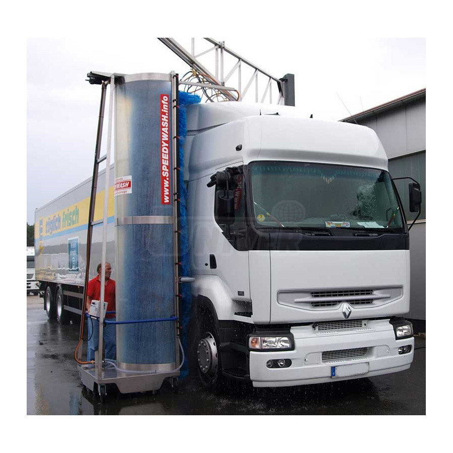 Mobilní kartáčové mycí zařízení pro mytí autobusů, nákladních automobilů a obdobných užitkových automobilů na volných plochách nebo v halách.- mobilní kartáčové mycí zařízení na bázi nejmodernější techniky pro kvalitní a snadné mytí autobusů, nákladních automobilů a obdobných užitkových automobilů bez nutnosti stacionární kartáčové umývárny