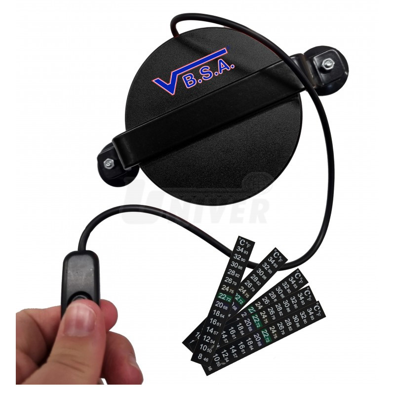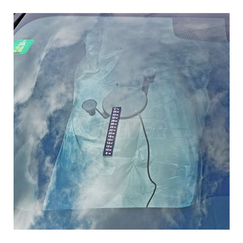 Ohřívač místa opravy čelního skla napájený přes USB adaptérem na 12 V zapalovač cigaret nebo 230 V síť. 5x proužkový teploměr (VBSA 961).