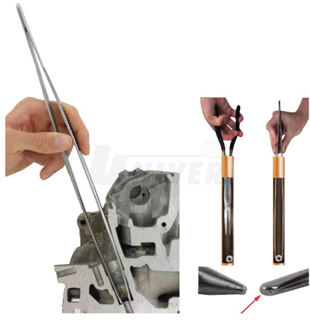 Velká pinzeta pro uchopení předmětů v obzvláště zúžených místech.- prezicizní nástroj se vzájemně se blokujícími čelistmi se silným sevřením