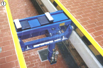 Podpěrný systém řady ABT v klidovém stavu osazený v pracovní jámě nad jámovým zvedákem.