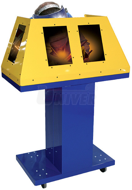Pojízdný svařovací box se používá pro svařování na dílně, pro předváděcí a školicí účely apod. Horní část je osazena 4 průhledy se zatemňovacím faktorem 11 (boční průhledy mají rozměry 310 x 210 mm, čelní průhledy 290 x 210 mm). Odkládací plocha s mřížováním má rozměry 1004 x 512 mm a je umístěna ve výšce 958 mm. Ze 4 koleček jsou 2 vybavena aretační brzdou.Celková výška boxu činí 1431 mm, hmotnost 59 kg.