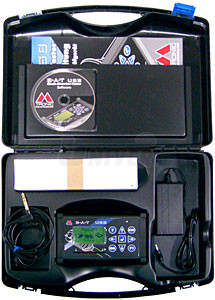 kufřík, tester S-A-T USB, ultrazvukový, vysílač EUS-40, síťový díl, papír pro tisk 500 lístků, USB-propojovací, kabel, PC-software na CD nosiči, český návod k obsluze.