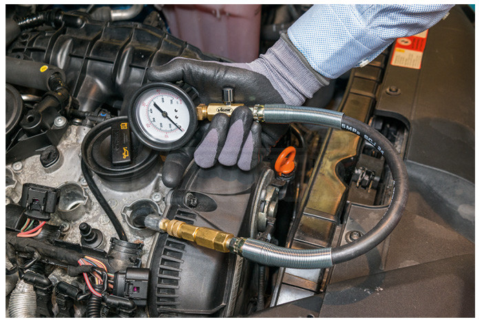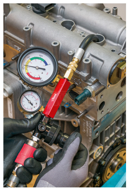 - možnost měření ztráty tlaku ve spalovacím prostoru motorů na základě úniku natlakovaného vzduchu různými netěsnostmi, poměrně snadno tak lze zjistit např. podpálené ventily, netěsné pístní kroužky, vadná těsnění pod hlavou atd. bez nákladné demontáže, přístroj se 2 tlakoměry 0 - 7 bar (jeden pro měření ztráty tlaku a druhý regulátoru tlaku plnicího stlačeného vzduchu) se na spalovací prostor napojuje zpravidla přes otvor pro zapalovací či žhavicí svíčku, daný prostor se natlakuje přes přístroj stlačeným vzduchem a následně měří pokles tlaku, barevně rozlišená stupnice tlakoměru charakterizuje, zda je těsnost v pořádku nebo naopak a v jaké míře