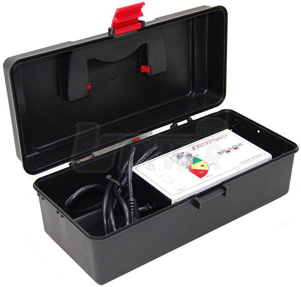 Přístroj pro snadné a stabilní opravy prasklin plastů MWM Plastic Spot 31050 vysoké kvality (Itálie) představuje novou technologii, která má všestranné použití při opravách prasklin plastů nejenom v autoservisech, v autokarosárnách a v autolakovnách.Přístroj má skříňku s knoflíkem pro regulaci žhavicího proudu (3 stupně: MIN / MED / MAX), spojovací kabel a držák žhavených kovových sponek se spínačem. Držák je vybaven dvěma trubičkami pro nasazení sponky příslušného tvaru prostým zastrčením a to buď shora nebo i z boku. Po stisknutí tlačítka držáku se sponka přiložená přes prasklinu na rubové straně plastového dílu velmi rychle ohřívá a během několika sekund se začne ponořovat do nataveného plastu. Podle tloušťky plastu se takto zataví milimetr i více do plastu a jakmile je tohoto stavu dosaženo, žhavení se vypne. Opět se několik málo sekund počká až natavený plast kolem sponky vytvrdne, držák se od sponky oddělí a sponka zůstává zatavená v plastu.