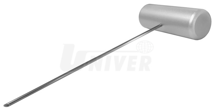 Provlékač s dutou ocelovou jehlou k propíchnutí vrstvy lepidla, skrz kterou se potom protáhne drát před začátkem vyřezávání skla.- provlékač vyřezávacího drátu s dutou ocelovou jehlou a T-rukojetí