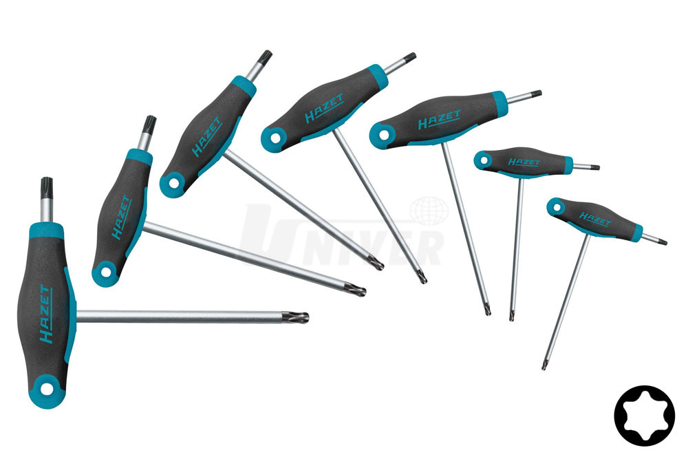7-dílná sada šroubováků s vnitřním TORX profilem a ergonomickou T-rukojetí.- vnitřní TORX profil