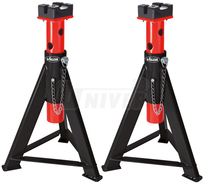 Sada 2 ks výškově nastavitelných stojánků s gumovou hlavicí a nosností 6 t.- výškově nastavitelná výsuvná část je jištěná čepem na řetízku