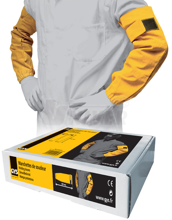 Víceúčelové svářečské rukávníky/návleky GYS 045231 renomované firmy GYS/Francie jsou vyrobeny ze speciální tkaniny, která výborně odolává horku a rozstřiku svařovaných materiálů. Mají délku 450 mm, manžety a přichycovací pásek na suchý zip.
