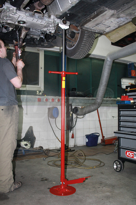 Teleskopická podpěra s ovládacím pedálem a maximální nosností 750 kg je výškově nastavitelná v rozsahu 1360 až 2030 mm.