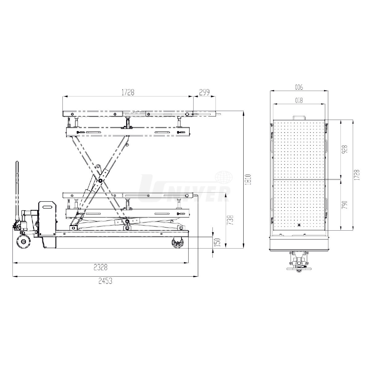 WP1500 Pojízdná zvedací plošina pro montáž baterií elektromobilů