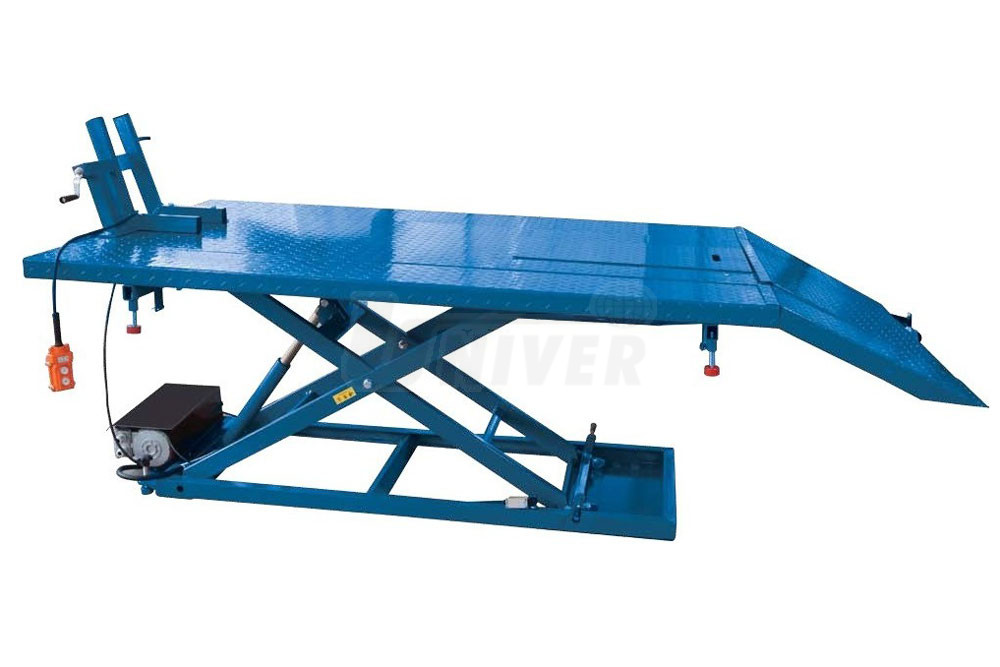 Elektrohydraulický plošinový zvedák s nůžkovou zvedací konstrukcí a s dálkovým ovládáním je určený pro zvedání motocyklů, čtyřkolek / QUAD, malé zemědělské mechanizace apod. při jejich údržbě a opravách.- elektrohydraulický nůžkový plošinový zvedák pro motocykly, čtyřkolky / QUAD, malou zemědělskou mechanizaci apod. s nosností 600 kg