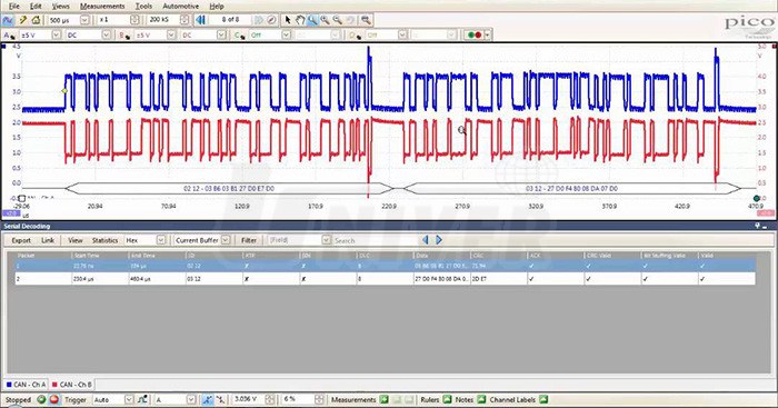 - PicoScope série 4000 provádějí až 400 milionů snímků za sekundu, což je taková rychlost, že to umožňuje zpracovávat i signály FlexRay a CAN Bus