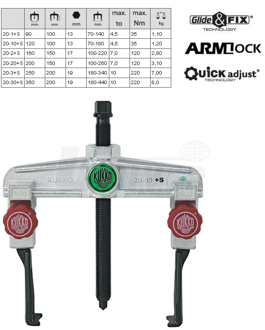2-ramenné stahováky s posuvnými háky pro úzké prostory německé firmy KUKKO-Werkzeugfabrik patří do nejvyšší kvalitativní třídy v Evropě.Vlastnosti: