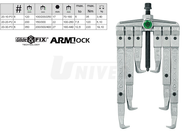Stahovák Kukko 120x100/200/250 mm třípárový 20-10-P3