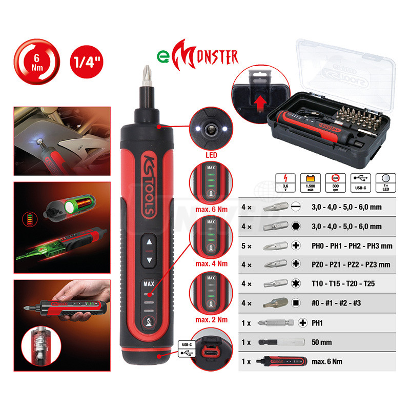 KS TOOLS 515.3600 Aku šroubovák na bity eMONSTER