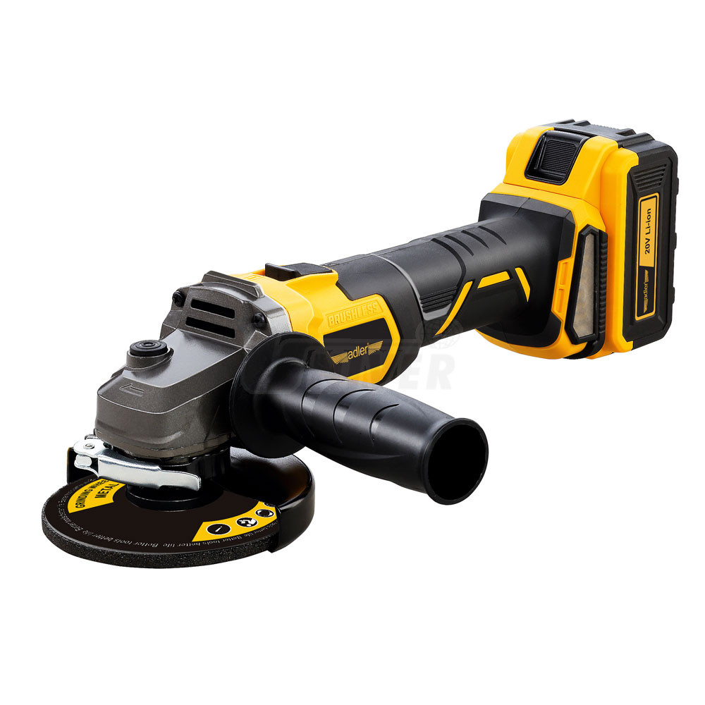 Akumulátorová úhlová bruska pro rozbrušovací a hrubovací kotouče Ø 125 mm s bezkartáčovým motorem a Li-Ion baterií 20 V / 4 Ah.- profesionální, velmi výkonná akumulátorová úhlová bruska pro brusné kotouče Ø 125 mm, která se hodí i pro náročné práce, pro broušení svárů, ostření nástrojů, pro karosářskou činnost,