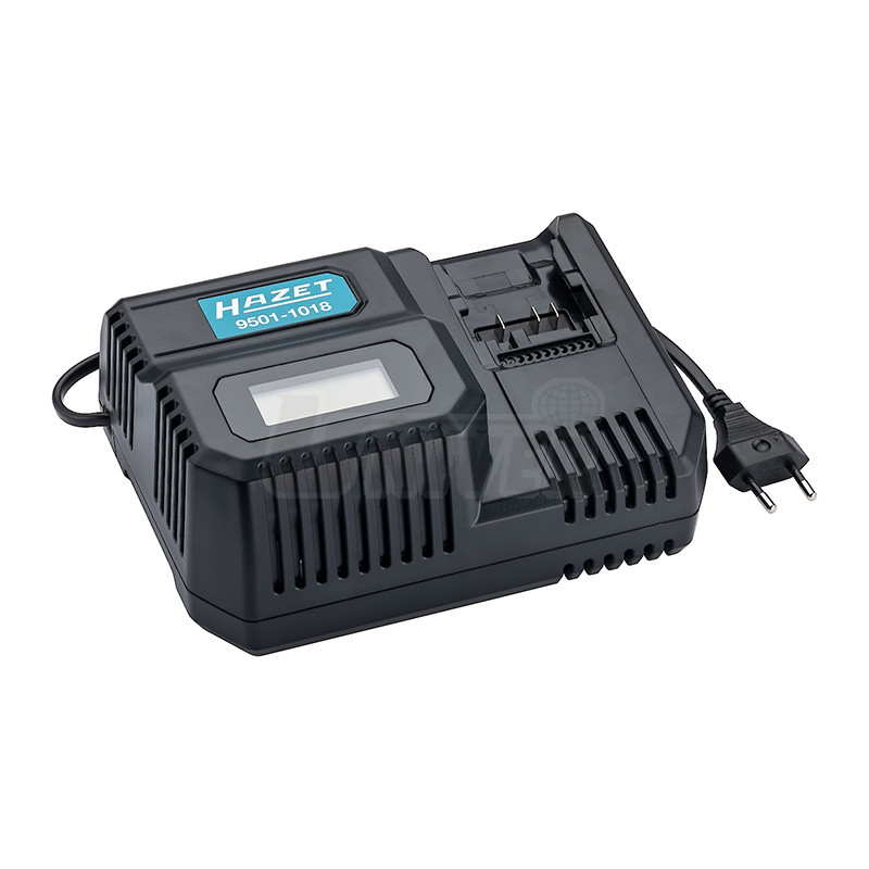 9501-1018 rychlonabíječka pro baterie HAZET 18 V, dosažení 80% kapacity nabíjení po asi 30 min., LCD displej k rozpoznání stavu nabití a diagnostika baterie