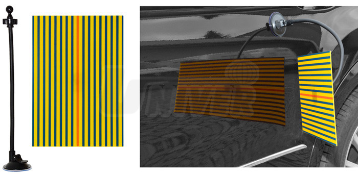 Plastová deska žluté barvy se 16 modrými a středovou červenou linkou a držákem s přísavkou se používá při podsvícení nebo reflexi ke snadnější identifikaci důlků nebo promáčklin na karosérii.- opravy důlků a promáčklin na karosériích vozidel technologií PDR (Paintless Dent Repair) se provádějí pomocí speciálního nářadí a pomůcek za studena bez nutnosti provádět konvenční tmelení, broušení a lakování poškozeného místa, přičemž oprava vyžaduje méně času a je levnější