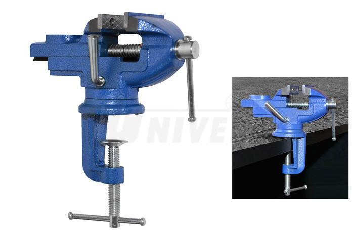 Otočný dílenský svěrák se svěrkou má šířku čelistí 60 mm.- malý, ale masivní otočný dílenský svěrák má upevňovací svěrku pro instalaci zpravidla na stůl
