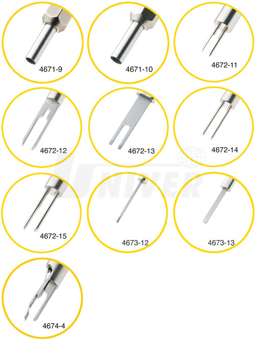 Doplňková 10-dílná sada pro rozpojování/vypichování vidlicových, plochých i okrouhlých konektorů účelně doplňuje základní sadu HAZET 4670-1/12 o vypichováky pro vozy VW/Audi/Škoda/SEAT.Umožňuje tzv. vypíchnutí/vnitřní rozpojení konektorů bez nebezpečí jejich poškození, tudíž i rychlé a profesionální odstranění závad kvůli vadnému kontaktu v konektoru apod. umístěná v plastovém kufříku obsahuje tyto komponenty: