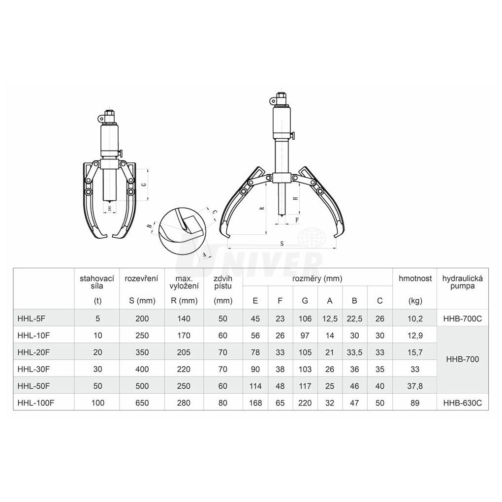 Dvou- nebo tříramenné hydraulické stahováky HHL