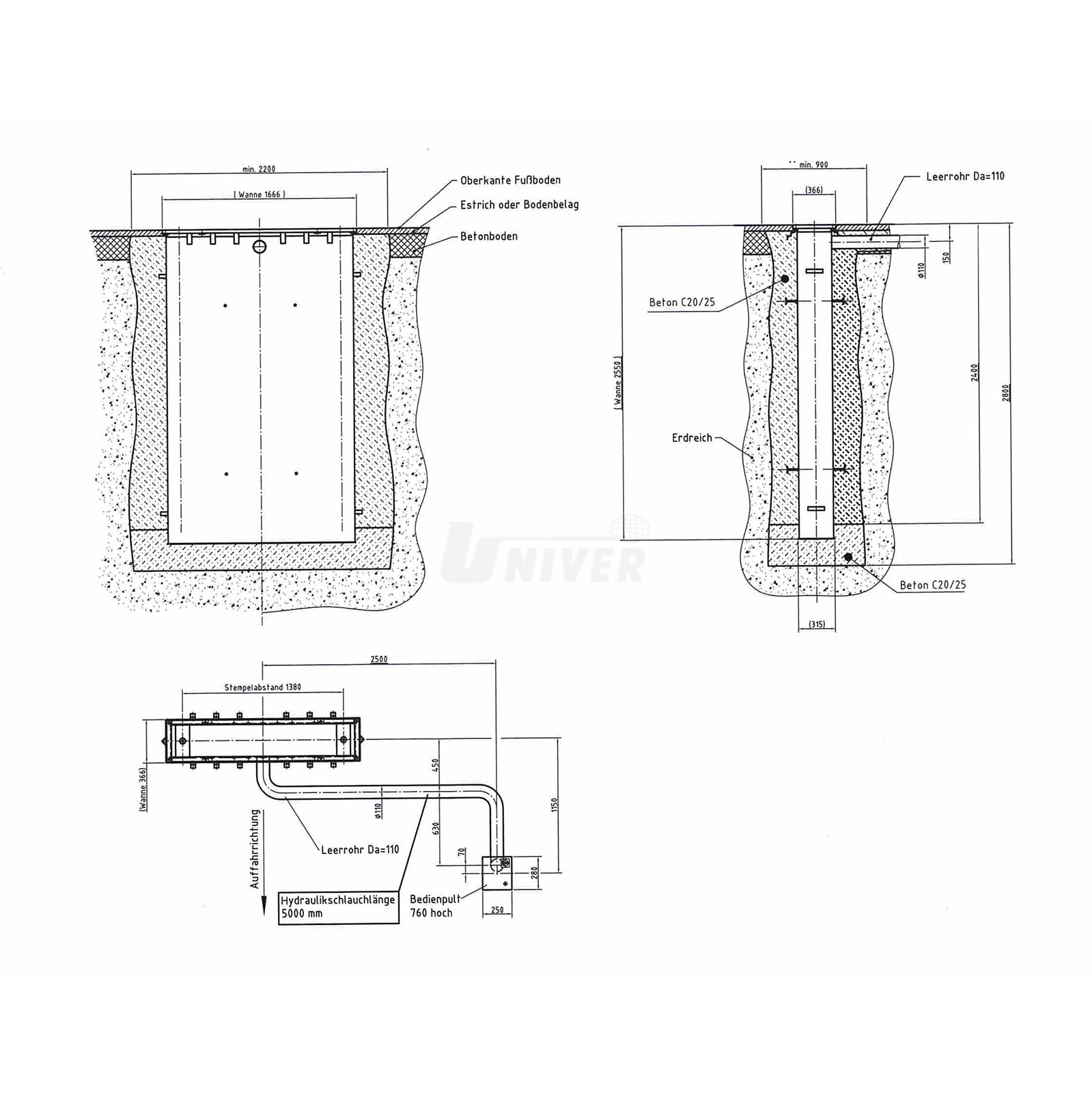 - instalační kazeta s žárově pozinkovaným rámem z profilové oceli je součástí dodávky zvedáku