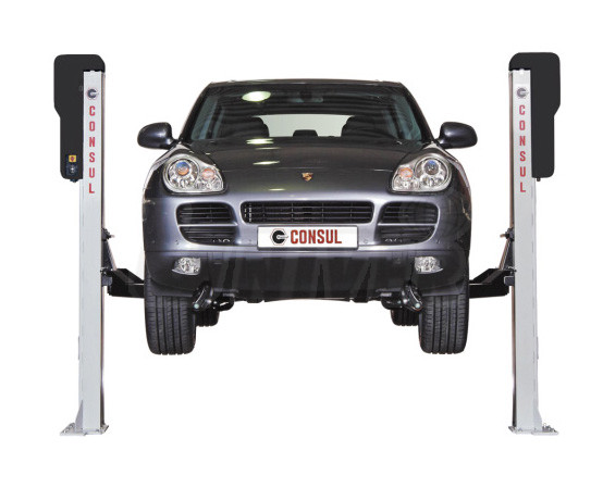 Dvousloupový elektromechanický zvedák (3500 kg) v tzv. bezprahovém provedení pro zvedání i malých automobilů (např. smart) a transportérů s dlouhým rozvorem.- 2 elektromotory, elektronicky spojené sloupy, včetně kabelového můstku + Energy set
