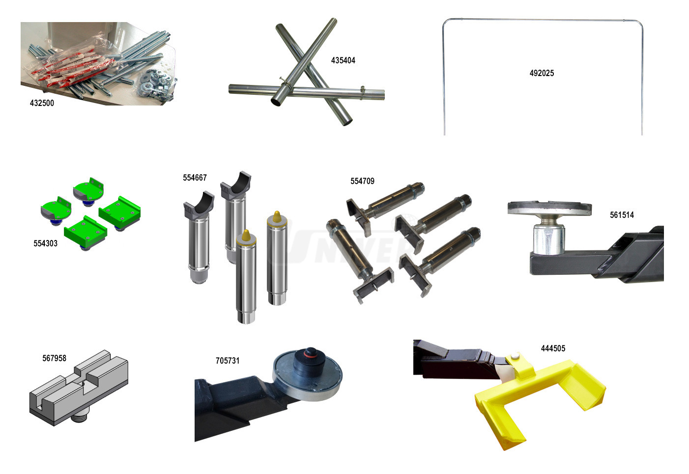 554303 Úchyty pro vozy VW Amarok, sada 2 ks pro přední a 2 ks pro zadní nápravu, pro dvousloupové zvedáky s nosností vyšší než 4,5 t