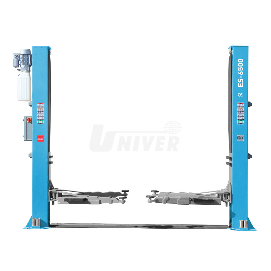 Elektrohydraulický dvousloupový asymetrický zvedák pro osobní a lehké nákladní automobily s nosností 6500 kg, s nízkým prahem.