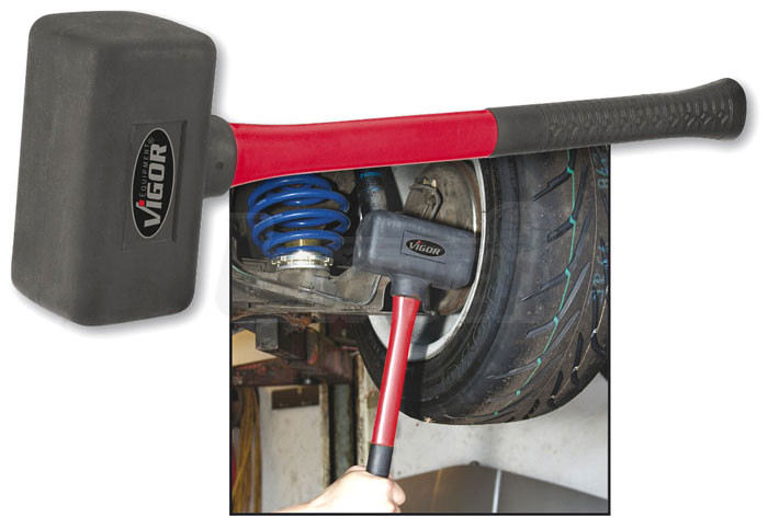 Gumová palice 2,5 kg má ergonomickou násadu a na ní gumovou hlavici o hmotnosti 2,5 kg.Díky použití náplně kovových kuliček ve střední části hlavice a konstrukci celého tělesa mají tyto palice při úderu jen zcela nepatrný zpětný ráz, čímž se chrání před poškozením opracovávaný materiál i klouby ruky.