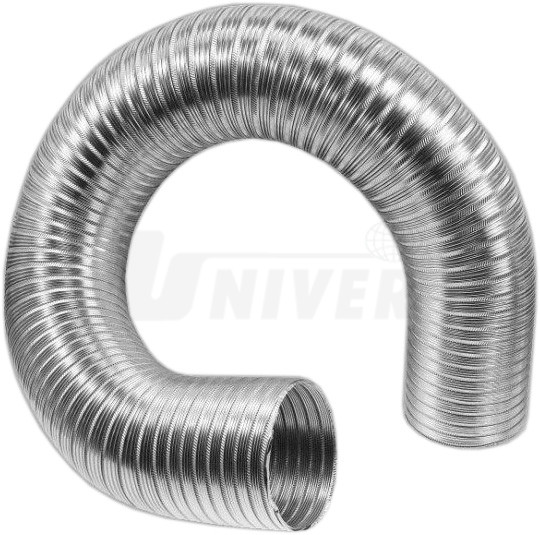 Ohebné hadice pro odsávání výfukových plynů, roztažitelné z 1 m až na 3 m, z hliníkové slitiny v Ø 80 až 200 mm s teplotní odolností až 300°C.