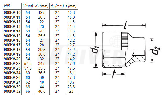 Nástrčné šestihranné hlavice vnější 1/2" rozměru 10 – 32 klasifikace VDE izolované až do 1000 V AC (střídavé napětí) nebo až 1500 V DC (stejnosměrné napětí).