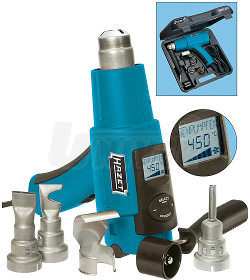Horkovzdušná pistole s řadou funkcí a bohatým příslušenstvím v plastovém kufříku nalézá široké uplatnění v autoservisech, v řemeslné výrobě, při instalačních pracích, svařování plastů, odstraňování nátěrů atd. Pistole má moderní ergonomický tvar, je výborně vyvážená, chráněná plnou keramikou pro optimální izolaci a disponuje i LCD-displejem. Sadu příslušenství tvoří 4 speciální trysky a přitlačovací kolečko.Umožňuje 7 programovatelných nastavení pro speciální sváření (zadá se jen materiál plastu, teplota a množství vzduchu jsou již předprogramované). Volba Stand-By zajišťuje jen nepatrný odběr proudu v ekonomickém režimu při konstantní teplotě. Výběr menu je v 8 jazycích (D,ES,FR,GB,IT,NL,PT,SE).