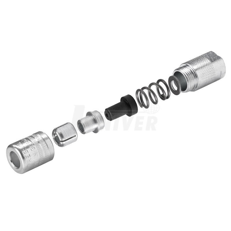 12 726 - extra tenká precizní 4-čelisťová hydraulická mazací hubice pro kuželovité mazací hlavice (H), vnitřní závit G 1/8", kovaná pozinkovaná ocel, Ø 13 mm, délka 42 mm, na klíč 13 mm